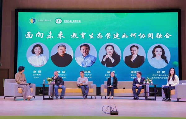 圆桌沙龙环节,启行教育创始人赵蔚作为主持人,与重庆市教育评估院副院长胡方、北京师范大学教育学部教授钱志亮、西南大学心理学部教授郭成、重庆八中党委书记周迎春、启诚巴蜀小学家长赵悦,围绕“未来教育生态营建协同融合”这一主题展开深度对话。
